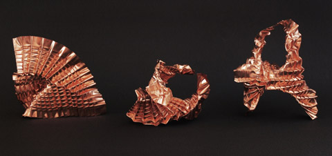 Origami started as a hobby, and by 2005 he was creating his own original designs. Most of his pieces are abstract shapes, naturally formed by the tension