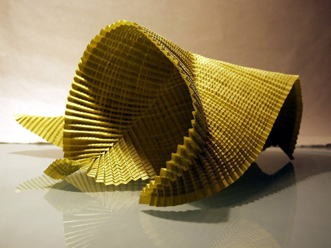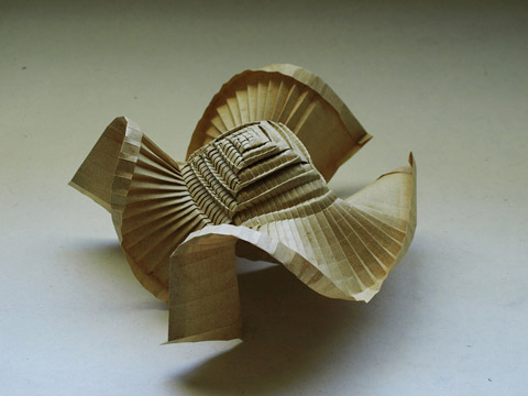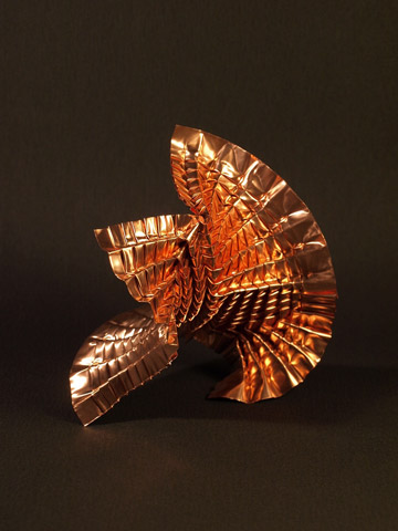 Origami started as a hobby, and by 2005 he was creating his own original designs. Most of his pieces are abstract shapes, naturally formed by the tension