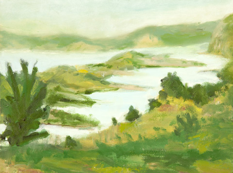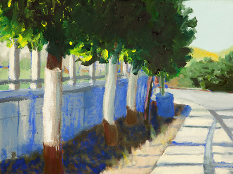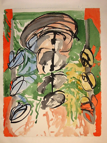 The recent watercolors of Bill Paskewitz show a strong contrast of light and shade on foreign forms of architecture. "I paint what I immediatly see when I work my compositions leaving out the details. I let the essence of the first glance challenge my perception. I think about the place, and now the memory of the first glance. The watercolor is a reminder of that experience."